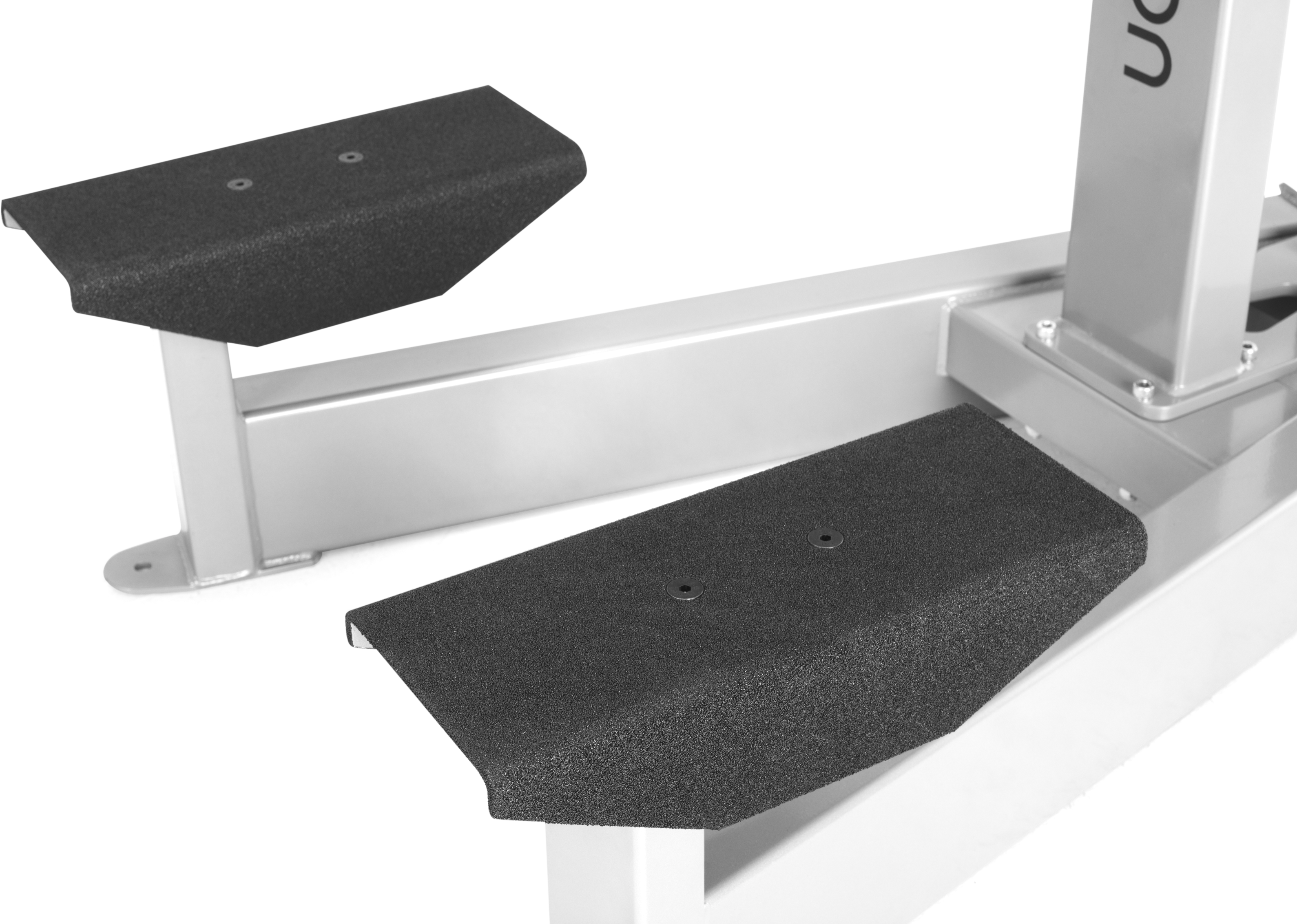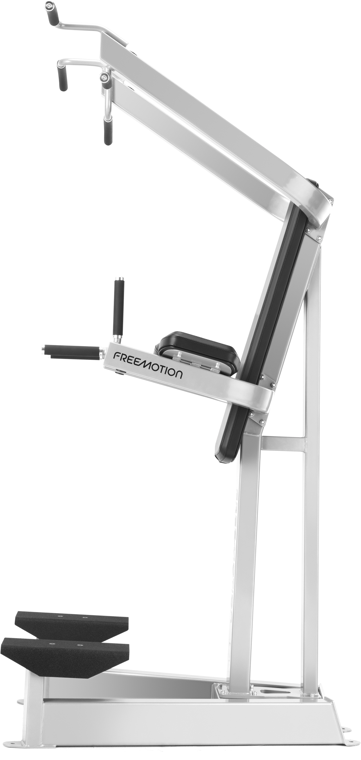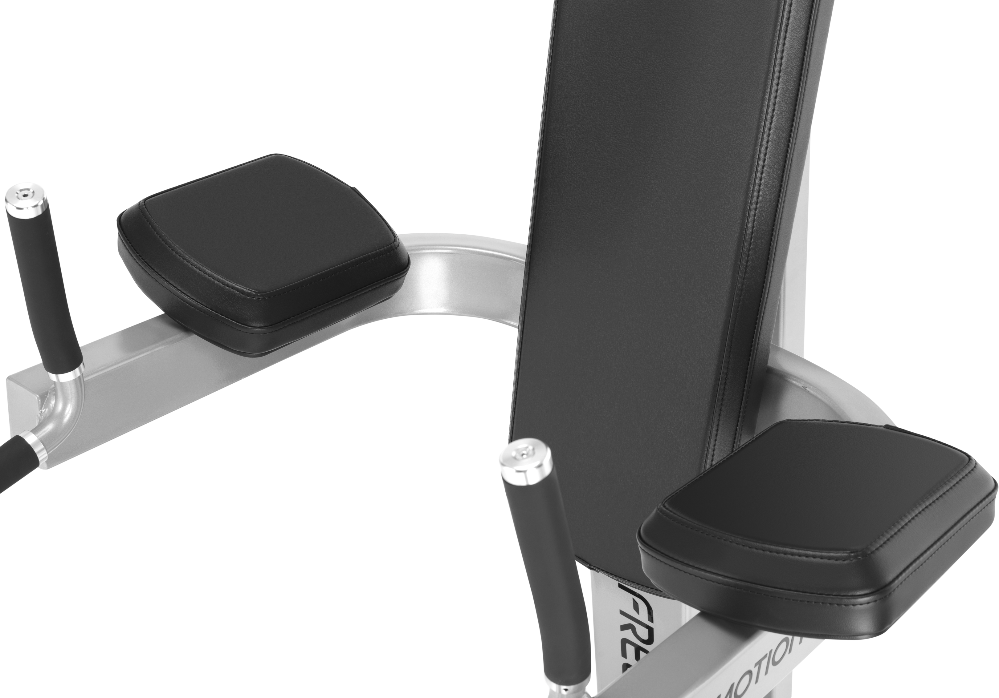 The Freemotion Dip Chin/Ab packs a lot of exercise versatility in a small footprint. Comfort features like the curved handles, padded armrests and back pad support users throughout their range of motion. Foot platforms are textured for secure placement.