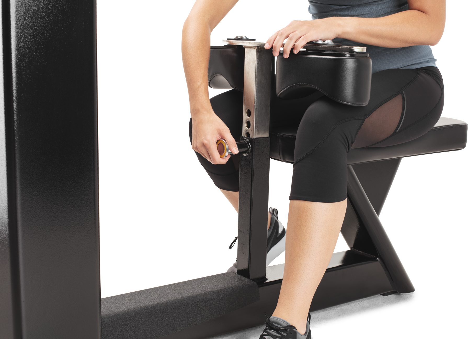 Thigh pads are contoured and swivel to comfortably isolate the legs. Seat bottom is also padded for fit and comfort.
