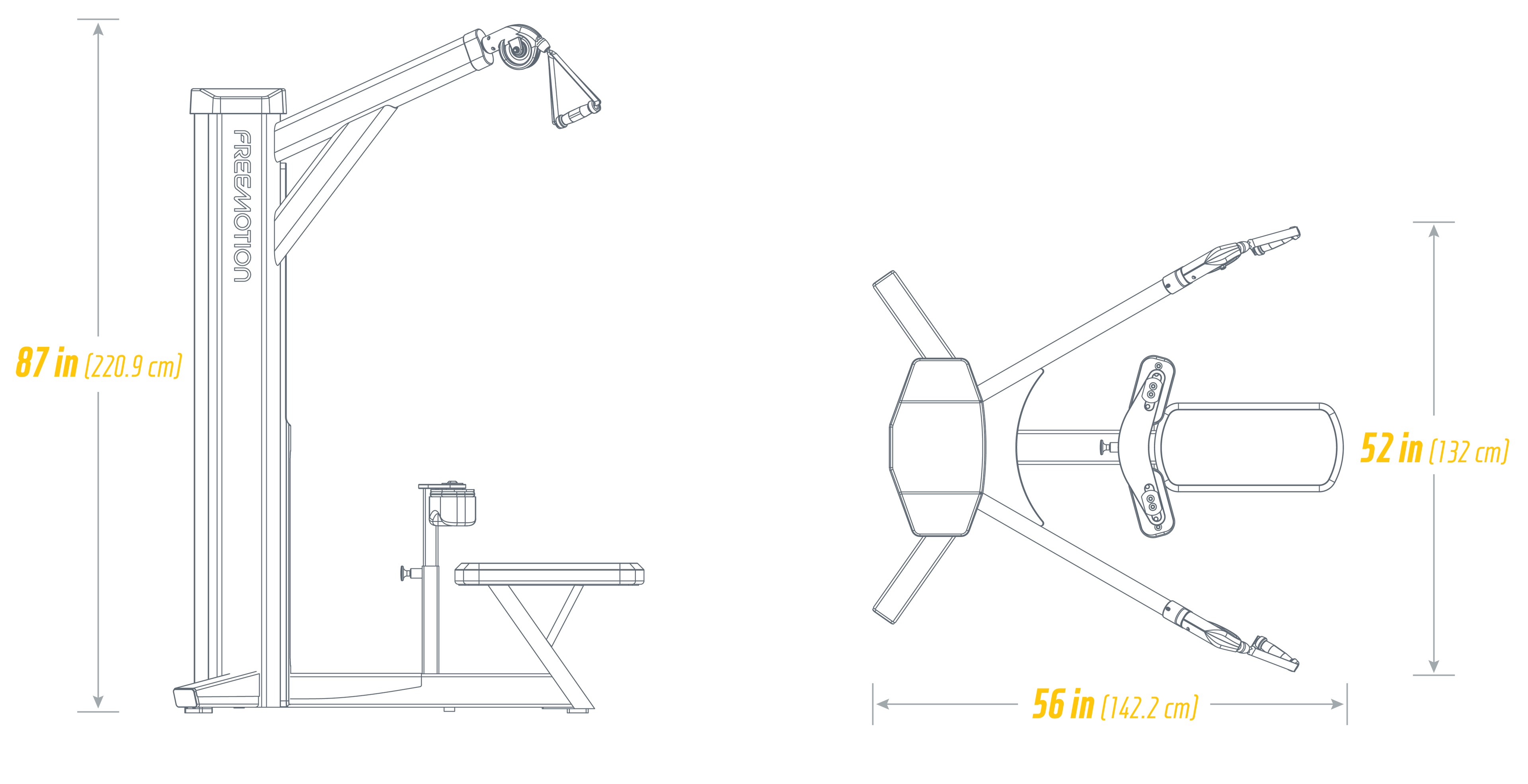 Cable length allows for full flexion and extension. Single arm: 76 in / 193 cm, two arms: 38 in / 96.5 cm.