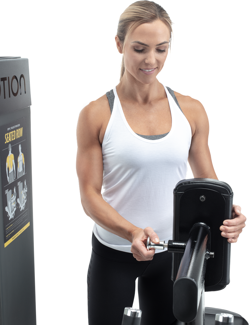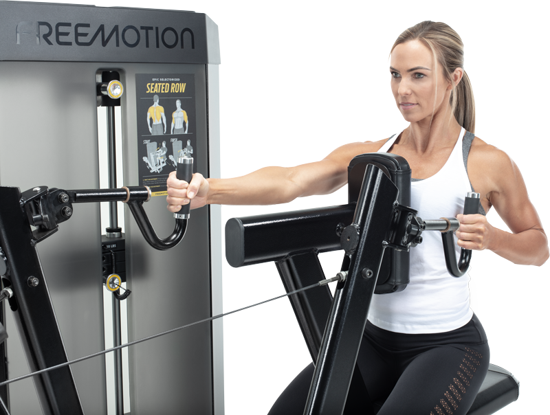 The EPIC Selectorized Seated Row offers a lot of movement variety to strengthen back muscles. Handles swivel and pivot to allow for various grips to fine-tune which muscles are targeted. Arms move independently