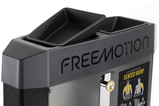 Users can keep their essentials close at hand with accessory trays at the top of the weight stack.