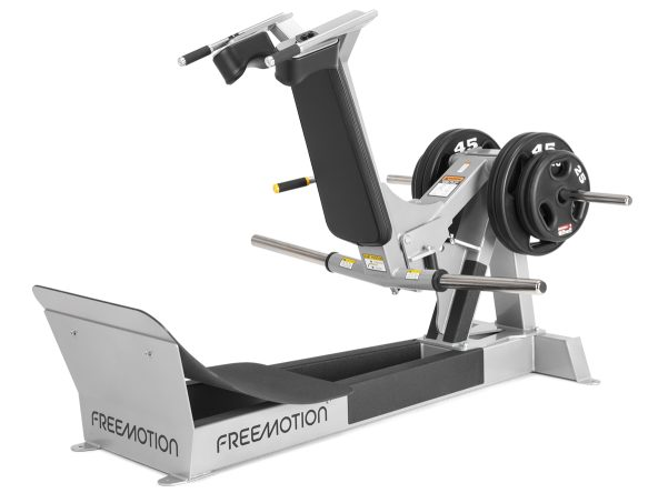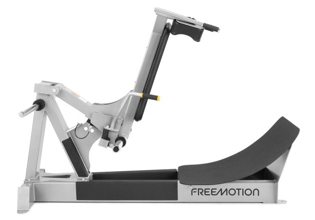 The Freemotion Plate-Loaded Squat helps to encourage proper form through a smooth range of motion with its curved platform. Integrated weight plate storage makes transitioning heavy loads easier and keeps the weight room clear of clutter. Users can set the bottom of their range of motion with the safety stop lever.