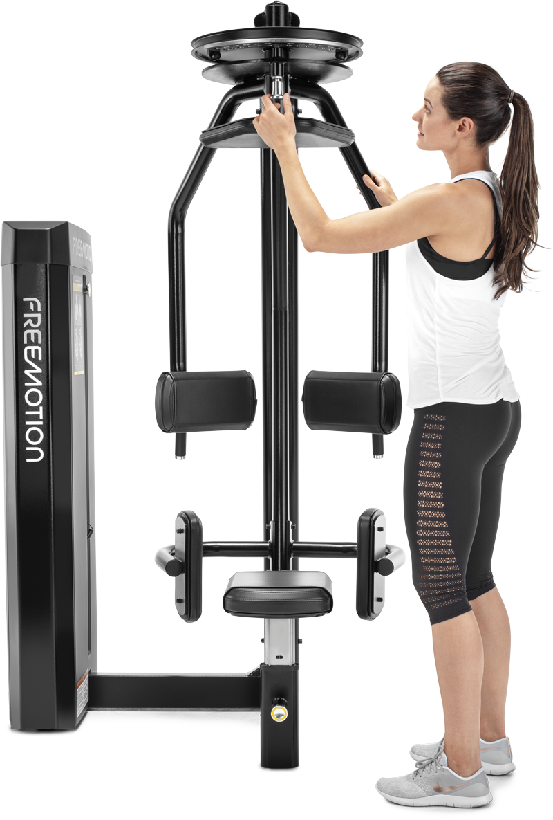 Users can keep their essentials close at hand with accessory trays at the top of the weight stack.