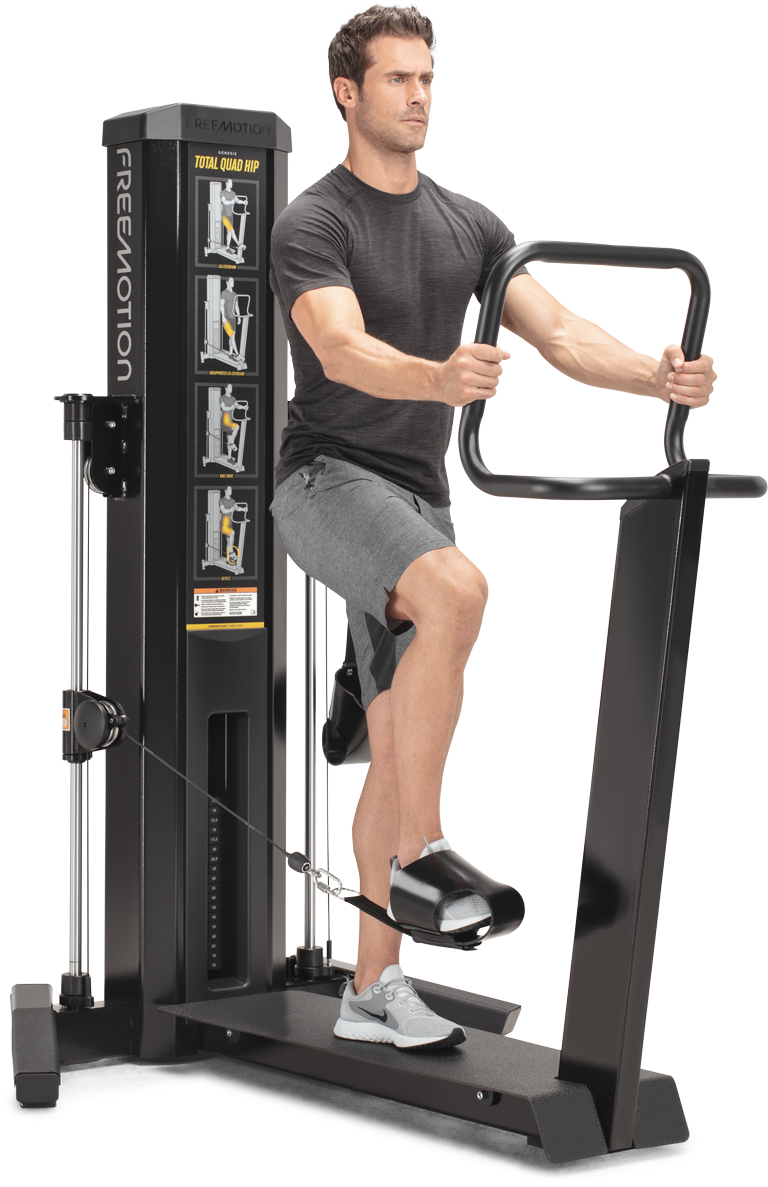 Performing leg extensions or simulating soccer kicks on the GENESIS Total Quad/Hip functionally trains the lower body from hips to ankles. This helps to build balance and increase strength in both the large muscle groups and joint stabilizers. The swivel pulleys travel along a linear guide to create progressive resistance that builds throughout the range of motion.